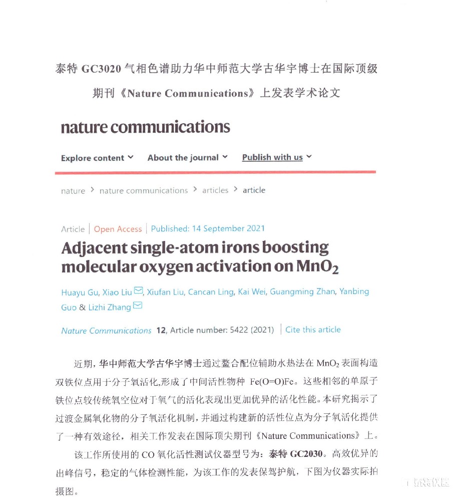 • 泰特氣相色譜助力古華宇博士在國際頂級 期刊《Nature Communications》上發(fā)表論文